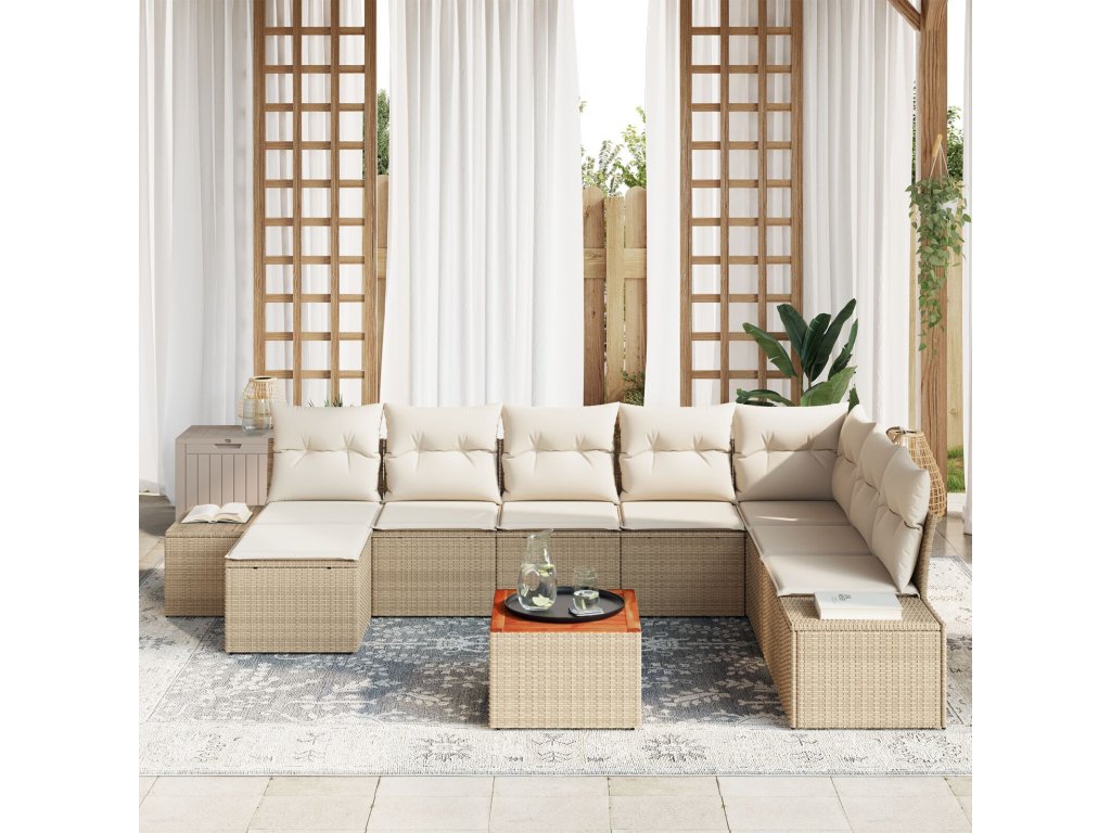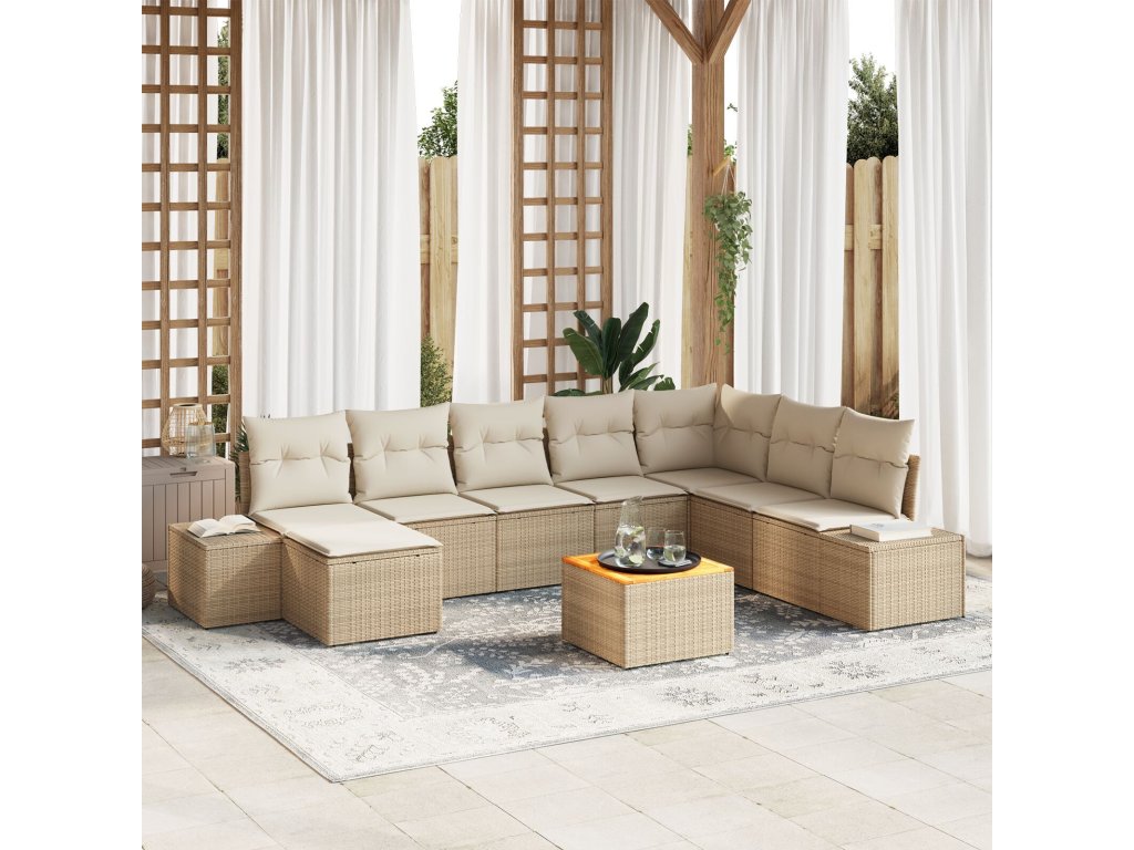 Sada zahradních pohovek s polštářem 9 pcs Béžová Poly ratan