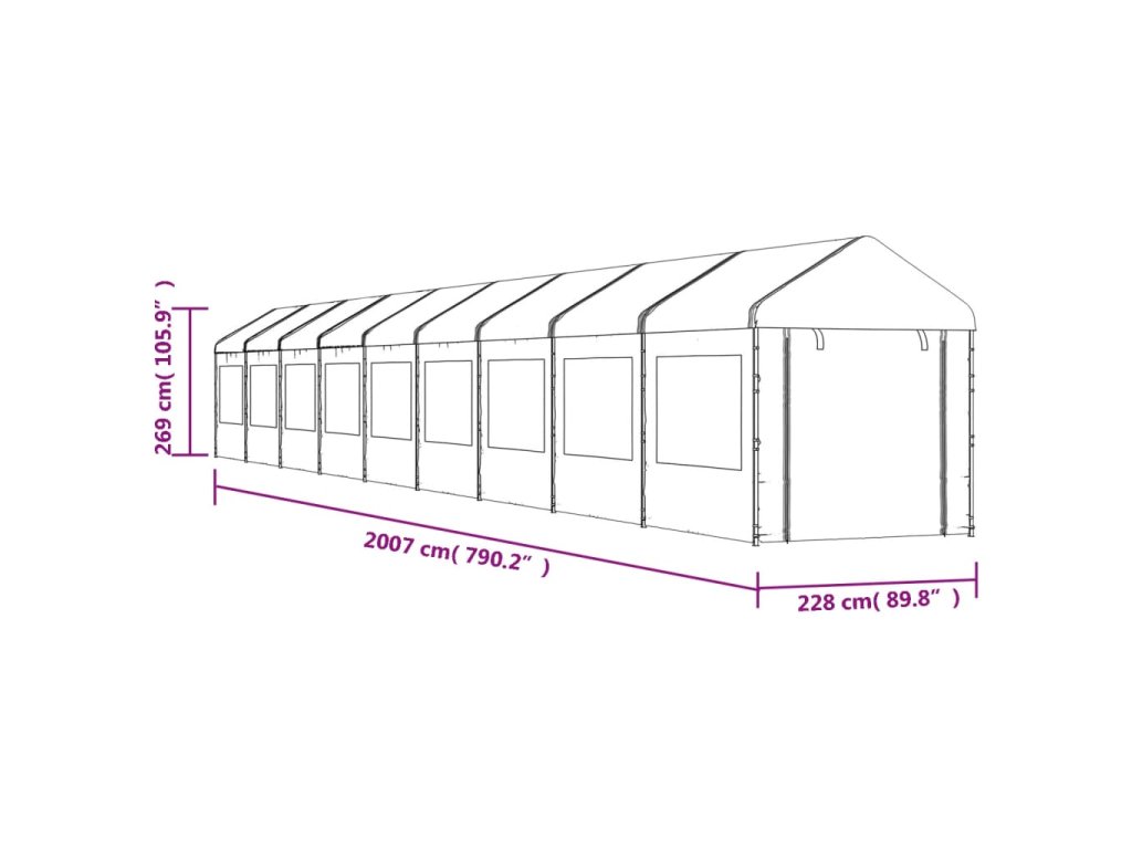 Altán se střechou bílý 20,07 x 2,28 x 2,69 m polyethylen