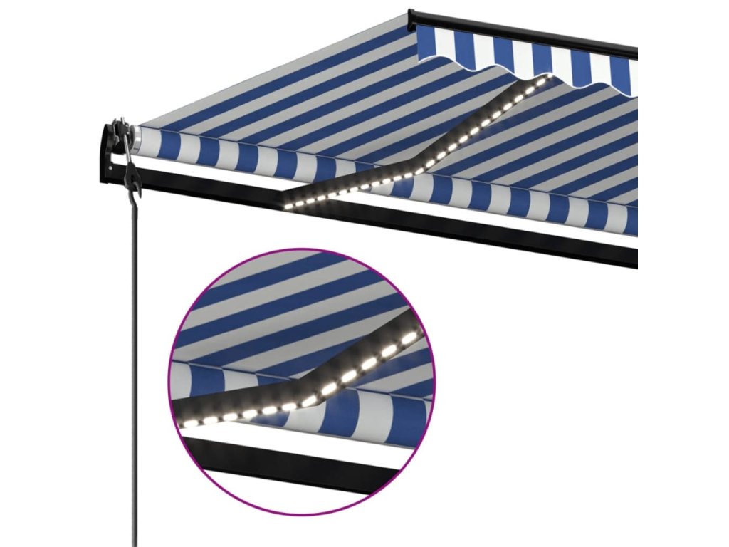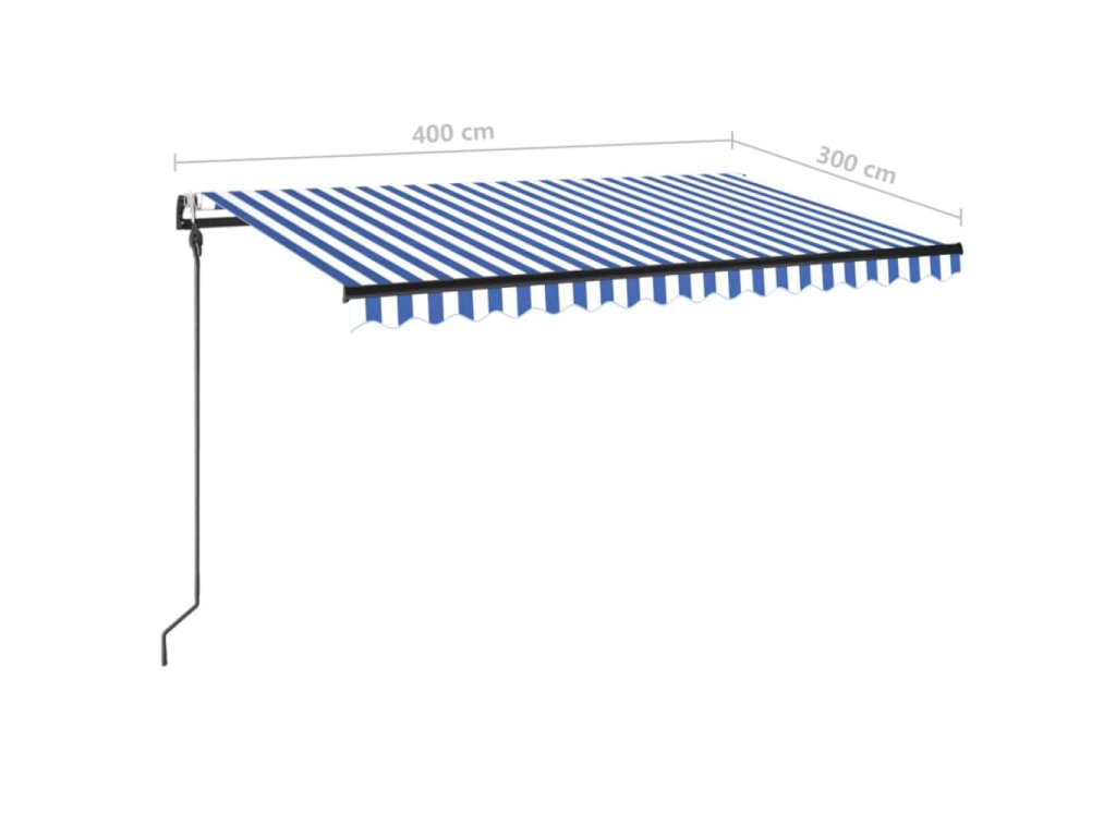 Automatická markýza LED a senzor větru 400 x 300 cm modrobílá