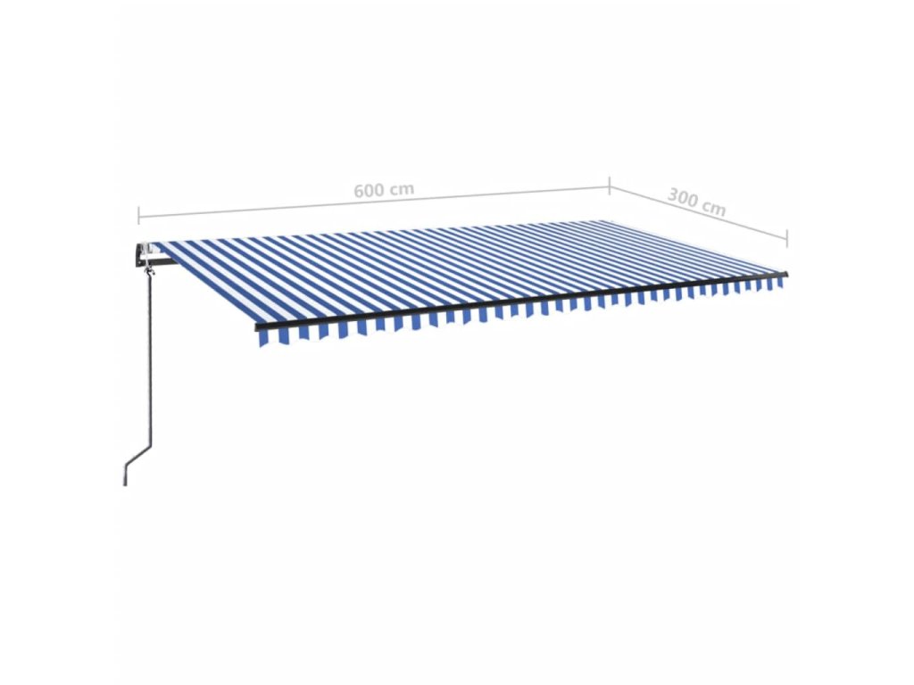 Automatická markýza LED a senzor větru 600 x 300 cm modrobílá