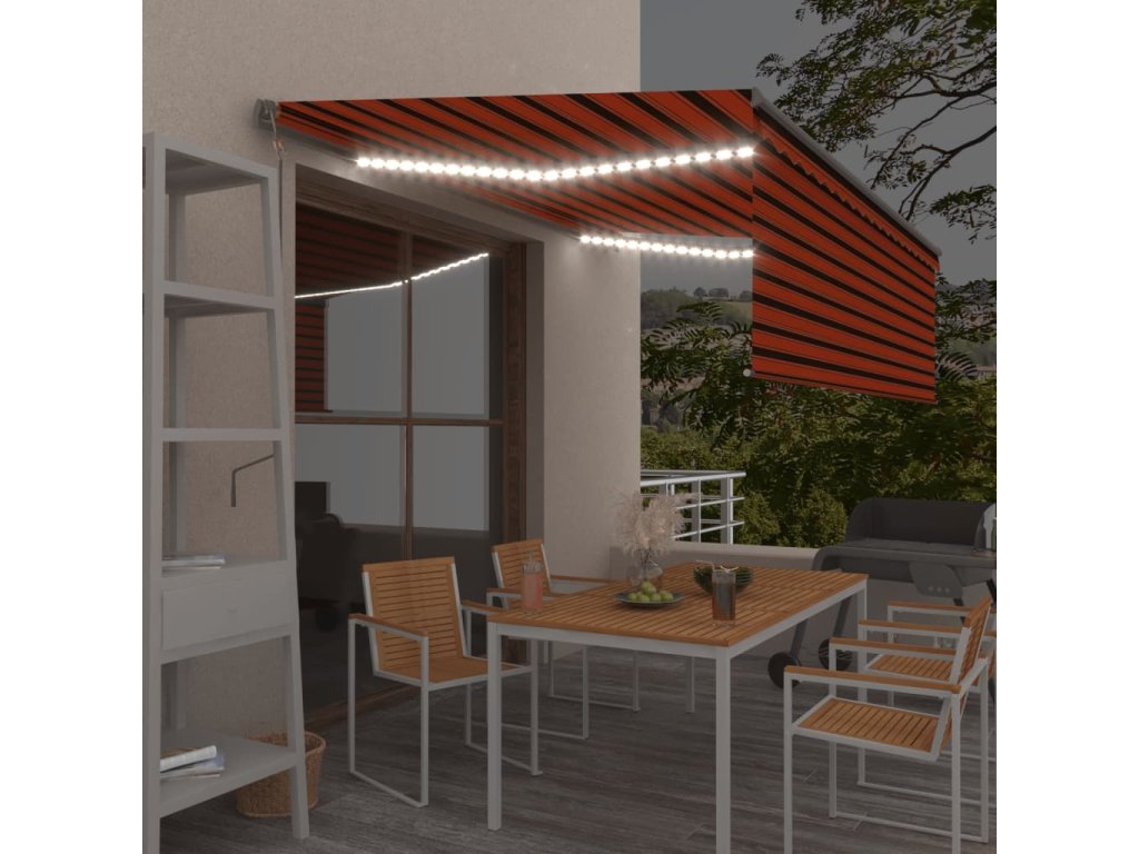 Automatická markýza roleta LED a senzor větru 4,5x3 m oranžová