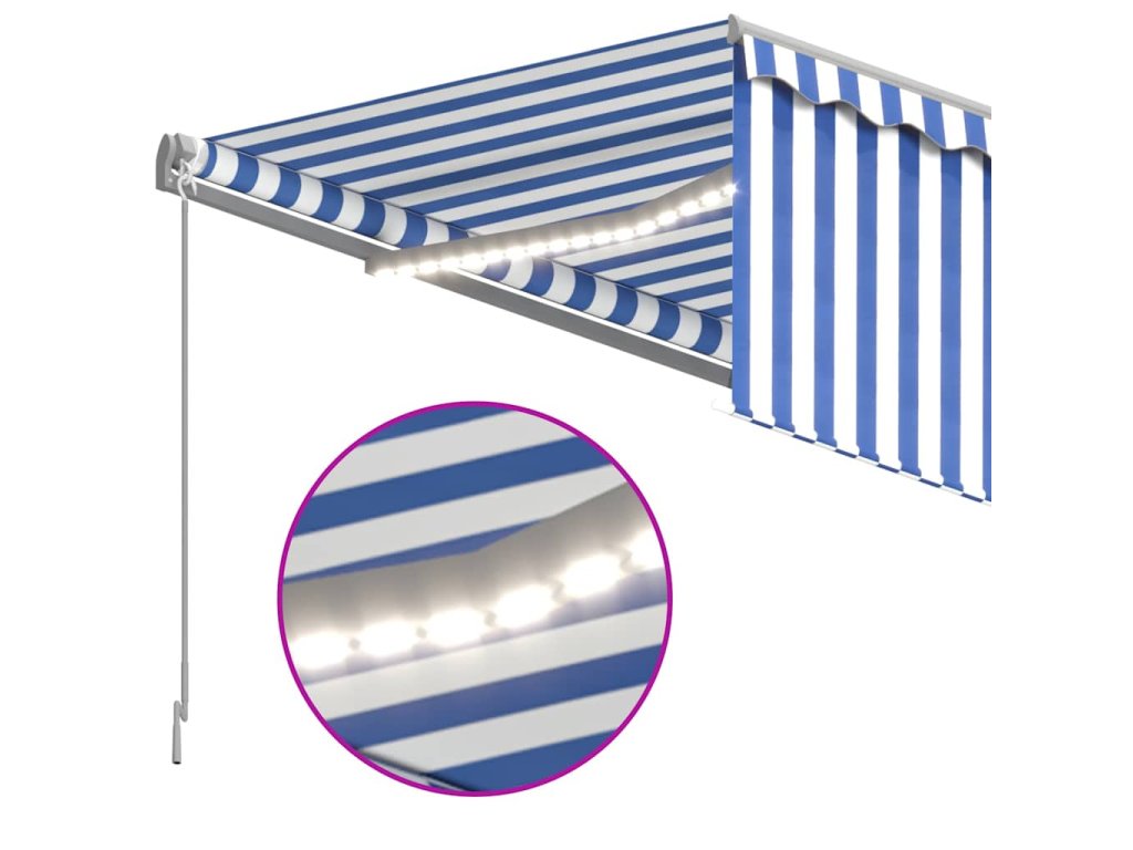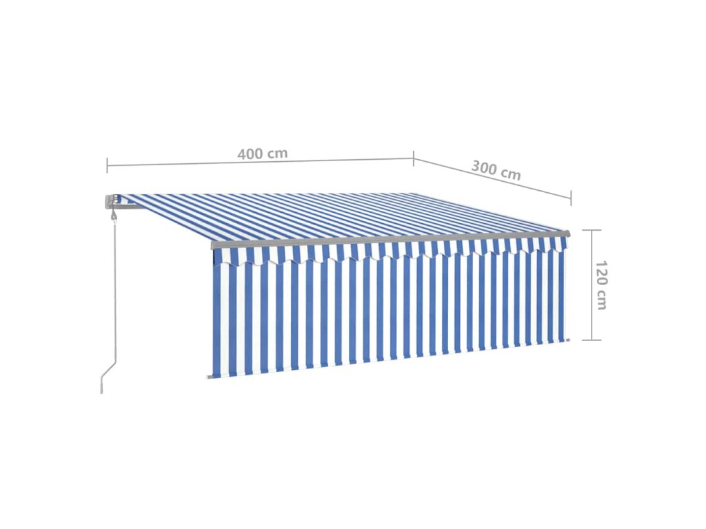 Automatická markýza roleta LED a senzor větru 4 x 3 m modrobílá