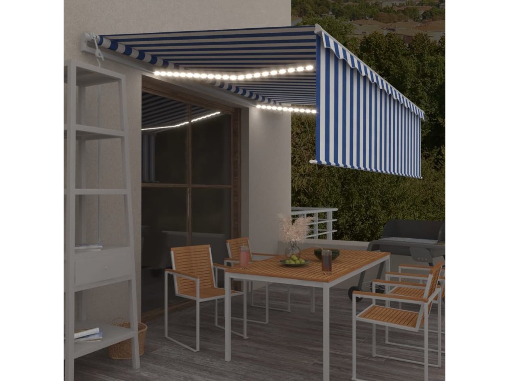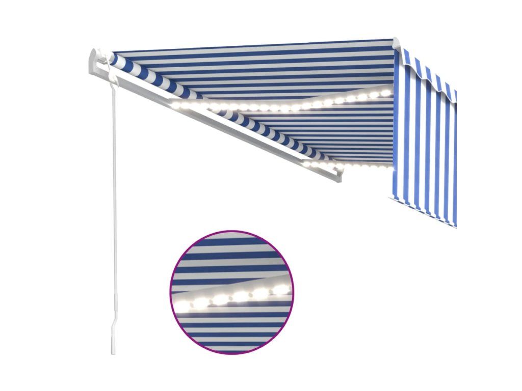 Automatická markýza roleta LED a senzor větru 5 x 3 m modrobílá