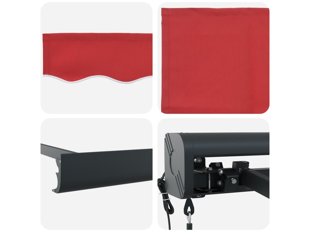 - Odolný polyester a hliník: Jak polyester, tak hliník dělají markýzu silnou a lehkou, takže vydrží i různé povětrnostní podmínky. UV-odolná látka chrání před sluncem a hliníková konstrukce snáší opotřebení - to je zárukou dlouhé životnosti bez ztráty vzhledu.
