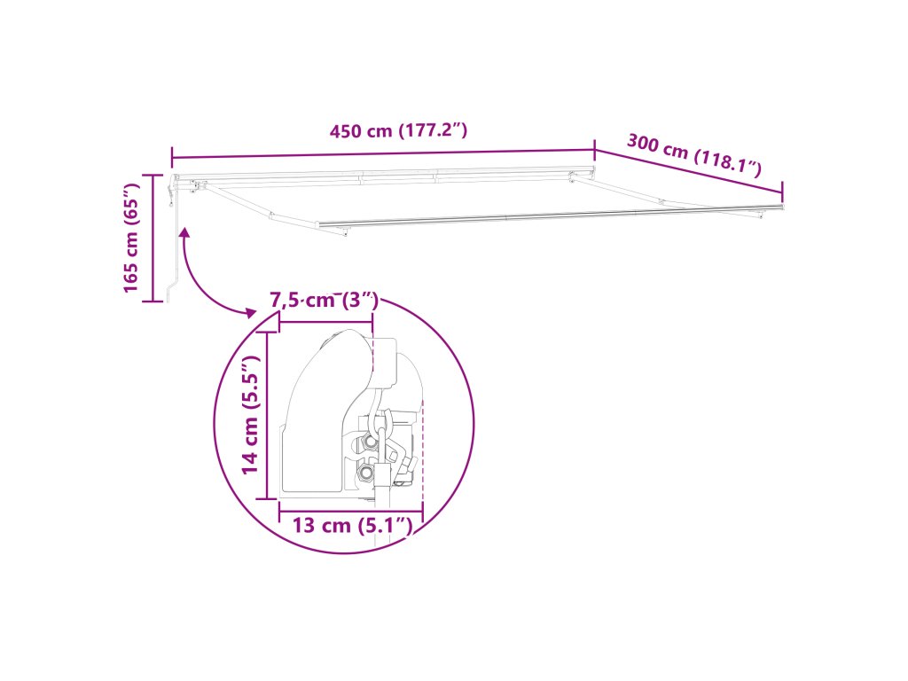 Tahle moderní markýza je skvělá pro venkovní použití a dodá styl a funkčnost vaší zahradě nebo terase. S jednoduchým designem se hodí do každého moderního prostoru a nabízí nastavitelné stínění pro různé potřeby u teras, nádvorních ploch a zahrad. Prachovaný vzor a manuální ovládání zajišťují, že se dobře hodí pro všechny vaše požadavky na stínění.