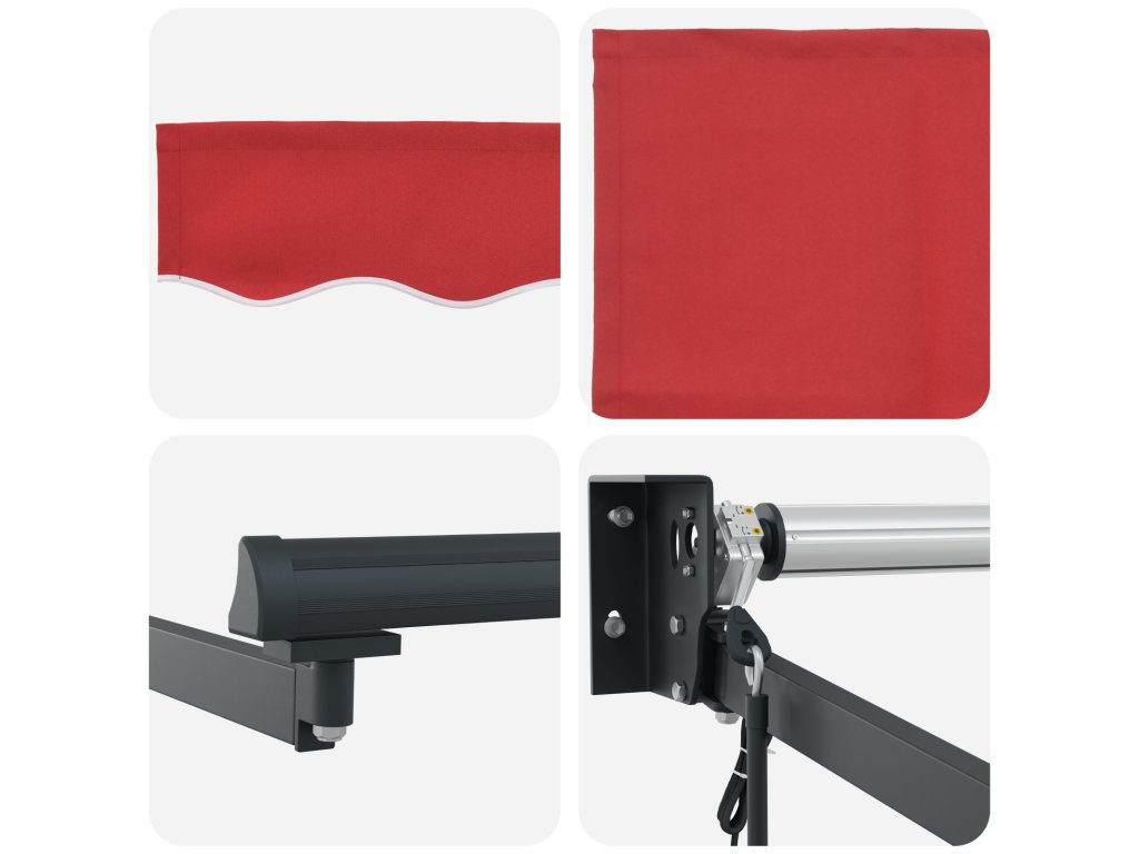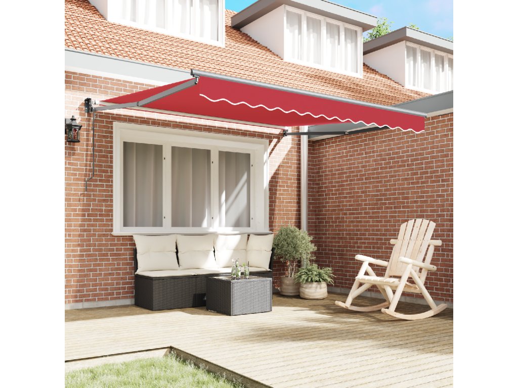 Tahle moderní zasouvací markýza dodává eleganci a funkčnost každému venkovnímu prostoru a je perfektní pro ty, kdo chtějí udělat ze své zahrady nebo terasy pohodlné místo. Její elegantní design s bohatou červenou polyesterovou vrchní částí a solidním hliníkovým rámem kombinují hezký vzhled s vynikajícím výkonem. Skvělá na setkání, odpočinek nebo jako stylový prvek do venkovního dekoru, tahle markýza je ideální pro ty, co mají rádi inovativní řešení zajišťující maximální komfort a ochranu.