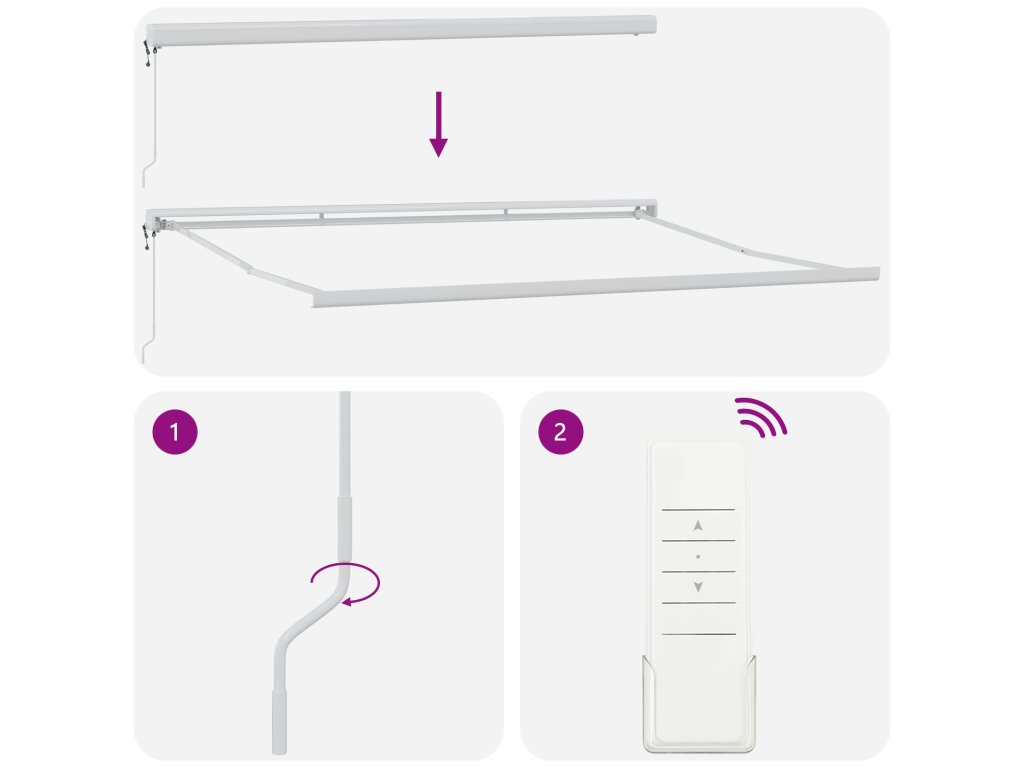 - 1 x látka markýzy, 1 x rám markýzy, 1 x dálkové ovládání