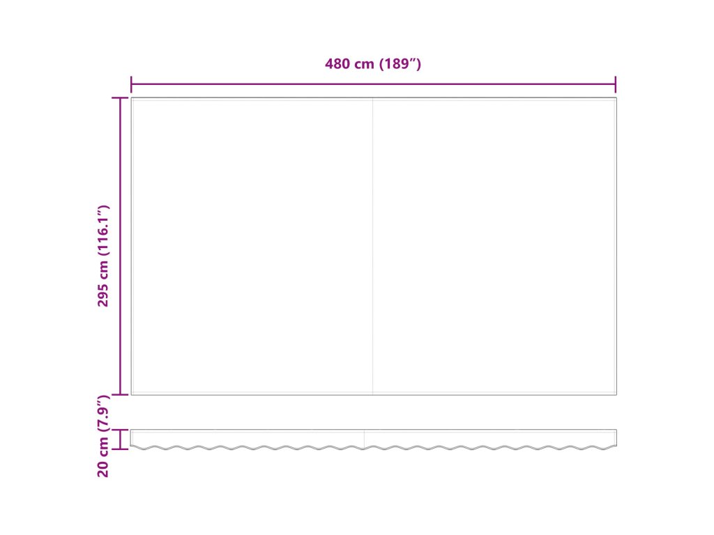 - 1 x Rám pro markýzu: 500 x 300 x 165 cm (Délka x Šířka x Výška)