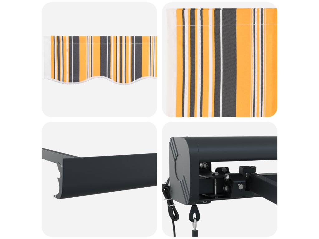- Odolný polyester a hliník: Jak polyester, tak hliník dělají markýzu silnou a lehkou, takže vydrží i různé povětrnostní podmínky. UV-odolná látka chrání před sluncem a hliníková konstrukce snáší opotřebení - to je zárukou dlouhé životnosti bez ztráty vzhledu.