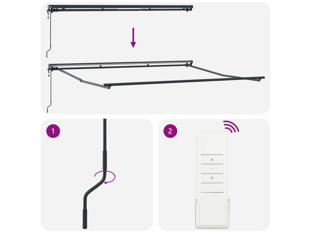 - Součásti: V každém balíčku najdeš tkaninovou markýzu, robustní rám a snadno použitelné dálkové ovládání, takže máš všechno, co potřebuješ pro její nastavení. Markýza poskytuje skvělé pokrytí, zatímco rám zajišťuje pevnost a stabilitu. Dálkové ovládání ti umožňuje snadno měnit polohu markýzy, takže si ji užiješ bez starostí.