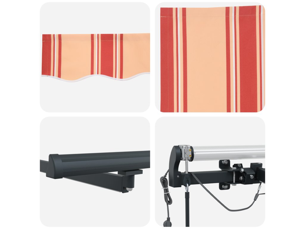 - Součásti: Balení obsahuje odolnou tkaninu markýzy, robustní rám pro stabilitu a dálkové ovládání pro pohodlné ovládání. Všechny komponenty jsou navrženy tak, aby spolu dobře spolu pracovaly a poskytovaly bezproblémový zážitek od instalace po každodenní využívání.