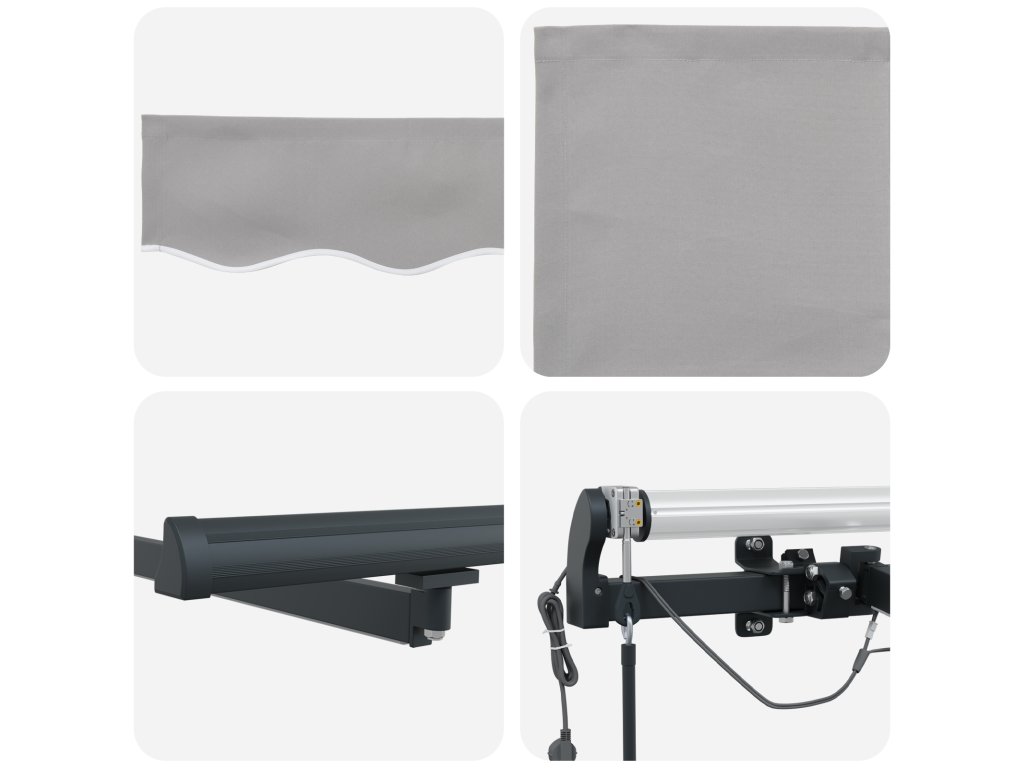 - Součásti: Balení obsahuje odolnou tkaninu markýzy, robustní rám pro stabilitu a dálkové ovládání pro pohodlné ovládání. Všechny komponenty jsou navrženy tak, aby spolu dobře spolu pracovaly a poskytovaly bezproblémový zážitek od instalace po každodenní využívání.