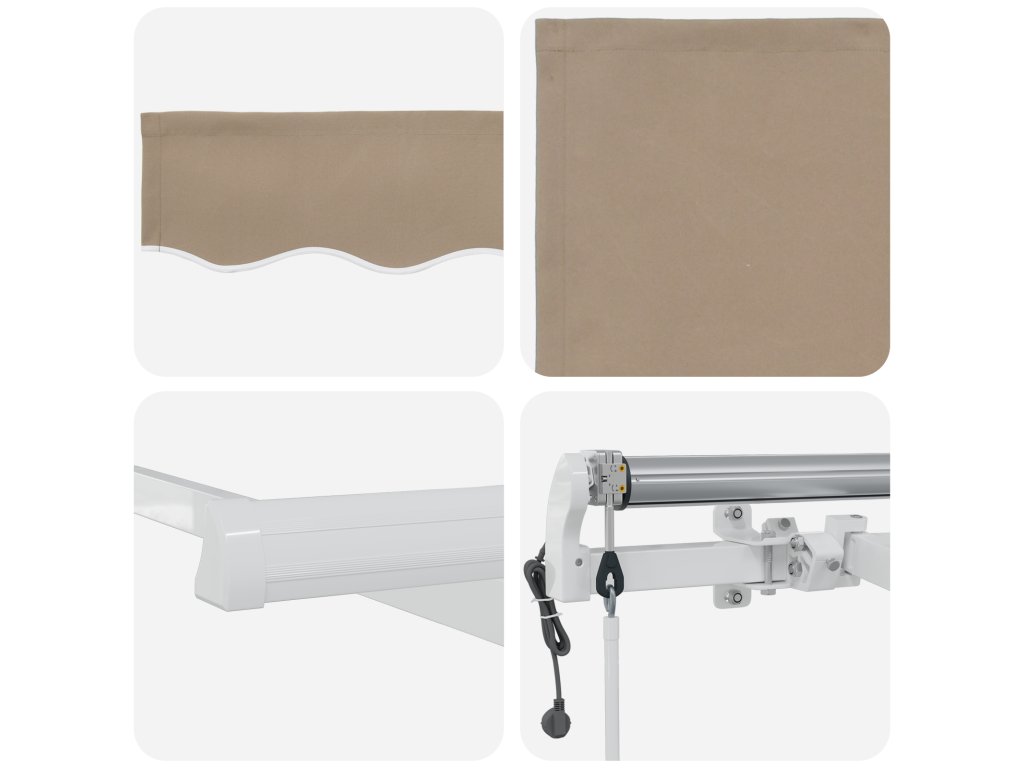 - Kvalitní tkanina: Vyrobena ze 100% polyesterového plátna, markýza je vysoce odolná a vydrží všechny povětrnostní vlivy. Tkanina zaručuje pohodlný stín i za slunečného počasí a svým výkonem je ideální pro časté používání v létě.