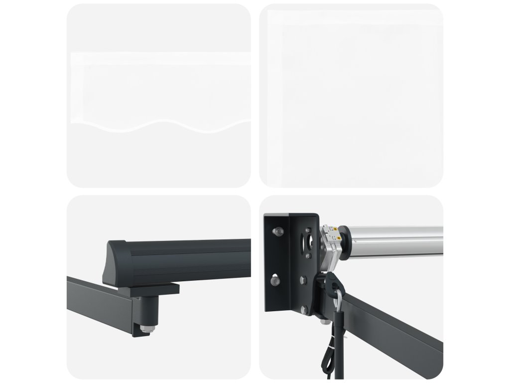 - Funkce / Design: Tohle je markýza odolná vůči UV záření, což znamená, že přežije silné slunce bez poškození. Zatahovací design vám dává možnost ji stáhnout, kdykoliv potřebujete, což je super pro změny počasí. Je navržena jednoduše a efektivně, krásně ladí s moderními styly.
