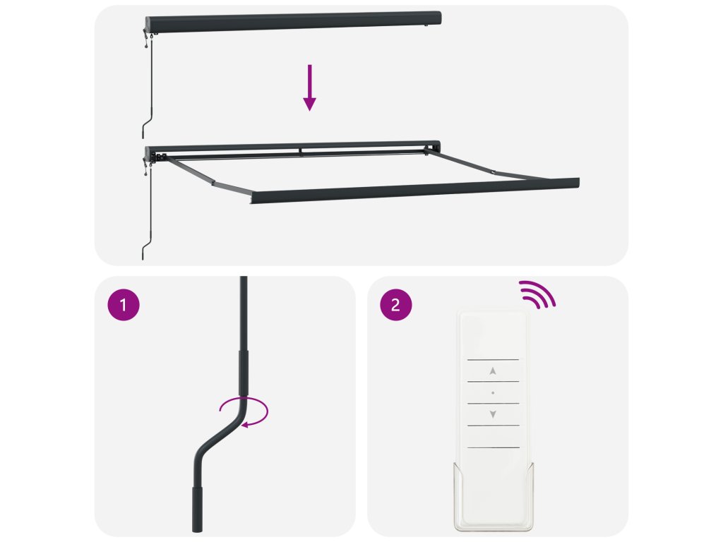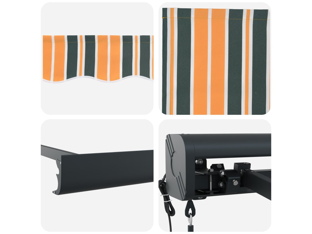 - Teleskopická technologie: Rozšiřte nebo stáhněte svou markýzu díky pokročilé teleskopické funkci. To zaručuje hladké přechody mezi otevřenými a zavřenými stavy, které se dobře zabezpečují pro optimální funkčnost. Užijte si jednoduchý provoz, zatímco si přizpůsobujete prostor pro zábavu nebo relaxaci venku.