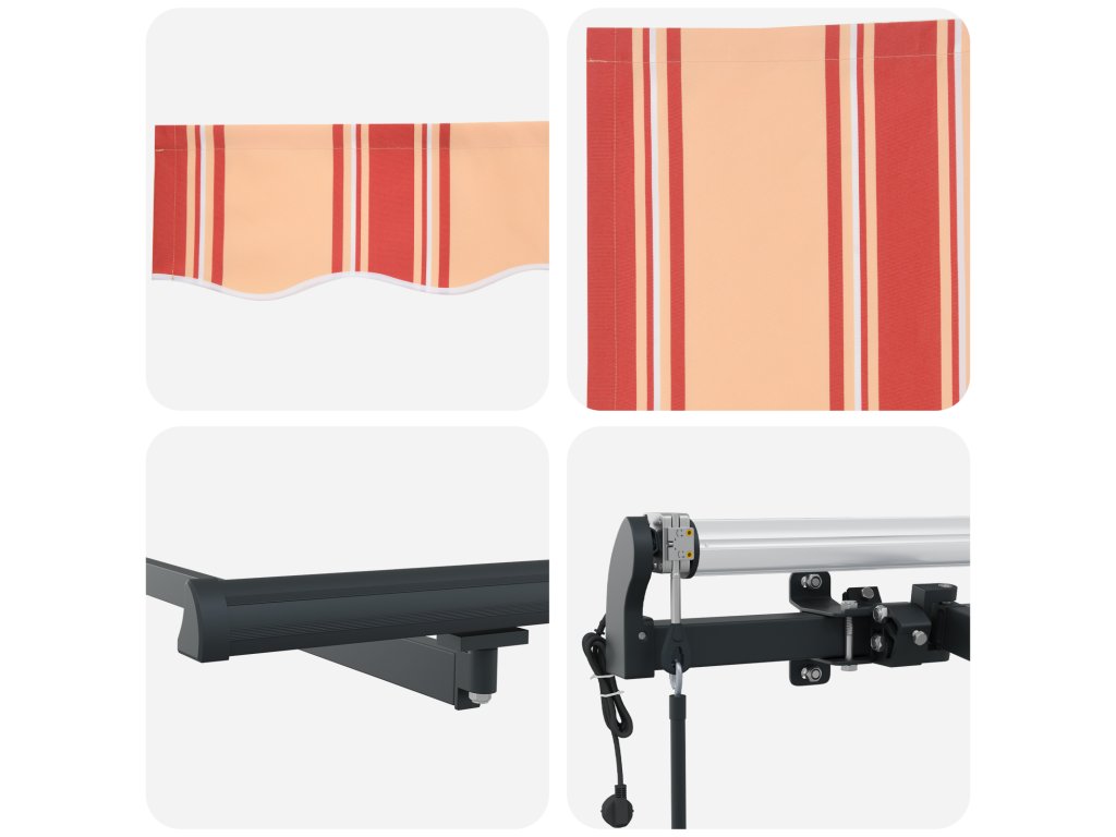 - Odolnost materiálu: Vyrobená z hladkého textilního povrchu a pevného hliníkového rámu, tato markýza je navržena pro dlouhou životnost. Materiály jsou voděodolné a odolné proti UV záření, takže vypadá dobře a odolává všem počasím. Je perfektní volbou pro venkovní stínění.