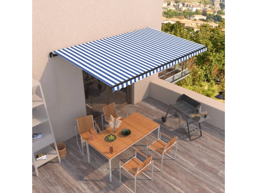 Automatická zatahovací markýza 500 x 350 cm modrobílá