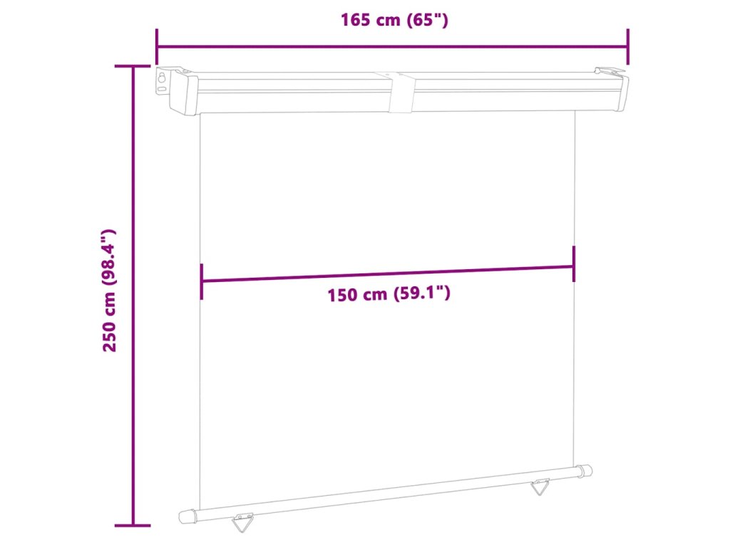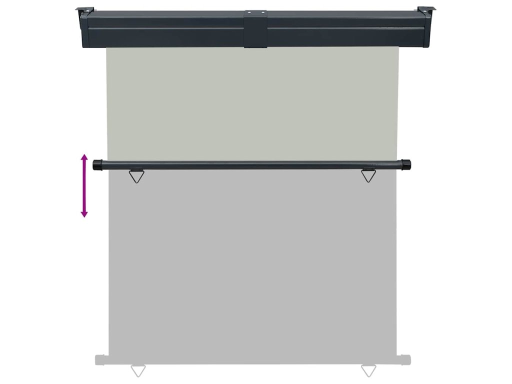 Zástěna je vyrobená z polyesteru, který je odolný jak vůči UV záření, tak proti roztržení. Hliníková rolna zajišťuje hladké vysouvání. Má samosvornou funkci, takže ji můžete zastavit na jakémkoli místě. Délku lze nastavit až do 250 cm. Boční markýza se dá automaticky stáhnout zpět do ocelové kazety pouhým zatažením za spodní trojúhelníkové kroužky. Navíc umožňuje flexibilní upevnění buď na stěnu, nebo na strop podle konkrétních potřeb.