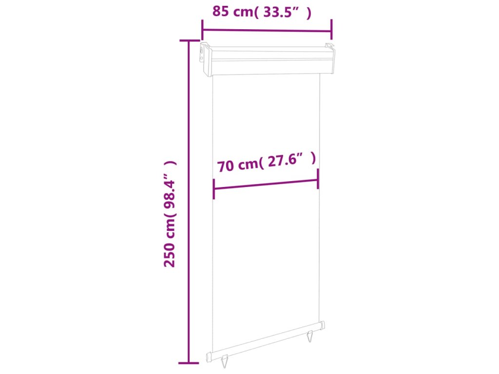 Zástěna je vyrobená z polyesteru, který je odolný jak vůči UV záření, tak proti roztržení. Hliníková rolna zajišťuje hladké vysouvání. Má samosvornou funkci, takže ji můžete zastavit na jakémkoli místě. Délku lze nastavit až do 250 cm. Boční markýza se dá automaticky stáhnout zpět do ocelové kazety pouhým zatažením za spodní trojúhelníkové kroužky. Navíc umožňuje flexibilní upevnění buď na stěnu, nebo na strop podle konkrétních potřeb.