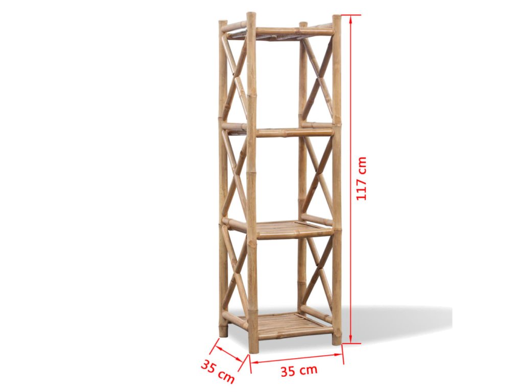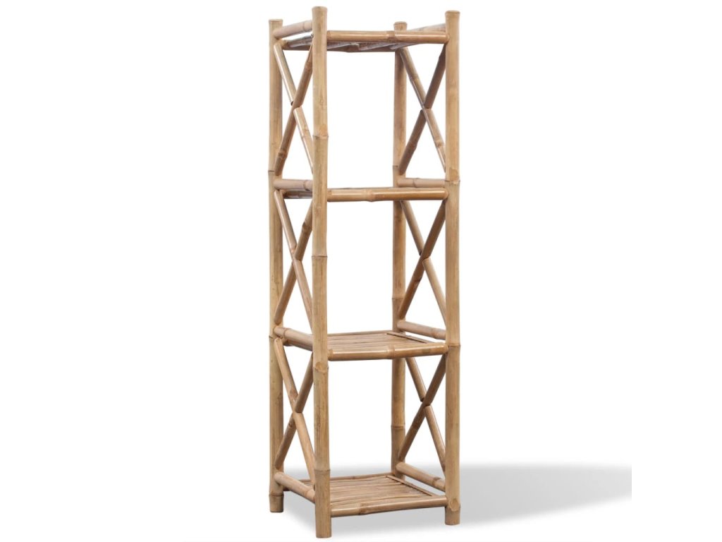 Tento bambusový regál se 4 poličkami může být používán v koupelně jako police na ručníky, v obývacím pokoji jako knihovna, nebo na verandě k vystavování hrnkových rostlin. Díky svému kompaktnímu a jednoduchému designu je ideální do malých prostor. Přirozená barva bambusu vnese do vašeho zařízení tropické kouzlo.