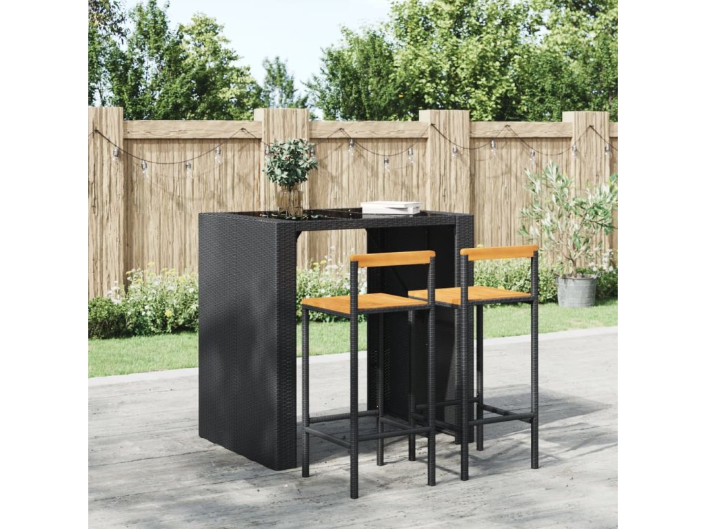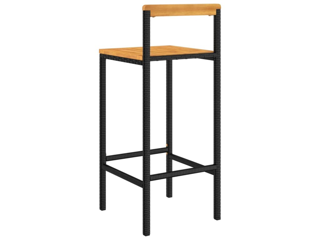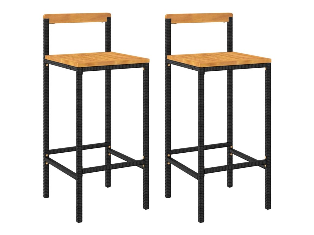 Barové stoličky 2 ks černé polyratan a masivní akáciové dřevo