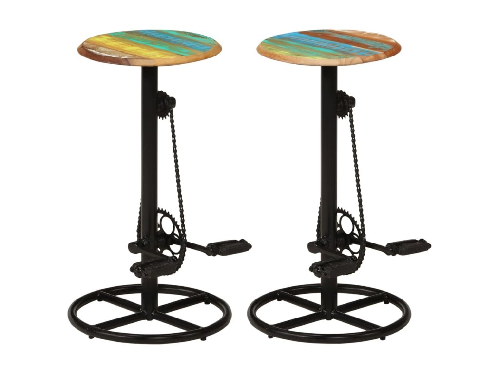 Barové stoličky jsou zhotovené z masivního recyklovaného dřeva a oceli a jsou vysoce stabilní a pevné. Recyklované dřevo pochází z trámů, podlah a podpěrných nosníků ze starých budov určených k demolici. Může tedy obsahovat celou řadu různých typů dřeva, jako je borovice, teak, buk, dub, cedr, mangovník, akácie atd. Recyklované dřevo tak nabývá vlastností všech těchto rozličných druhů dřeva. Recyklované dřevo je již zestárlé, ošlehané a vyschlé, takže se nesmršťuje ani neohýbá. Každá fáze výrobního procesu je prováděna s největší pečlivostí, ať už se jedná o rekombinaci, leštění, natírání anebo lakování. Balení obsahuje 2 barové židle. Tuto sadu je třeba sestavit.