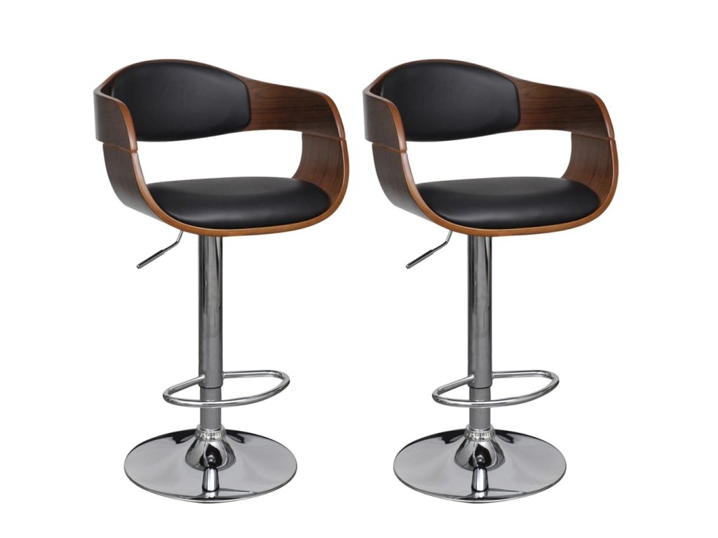 Barové stoličky 2 ks ohýbané dřevo a umělá kůže