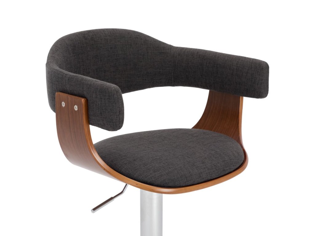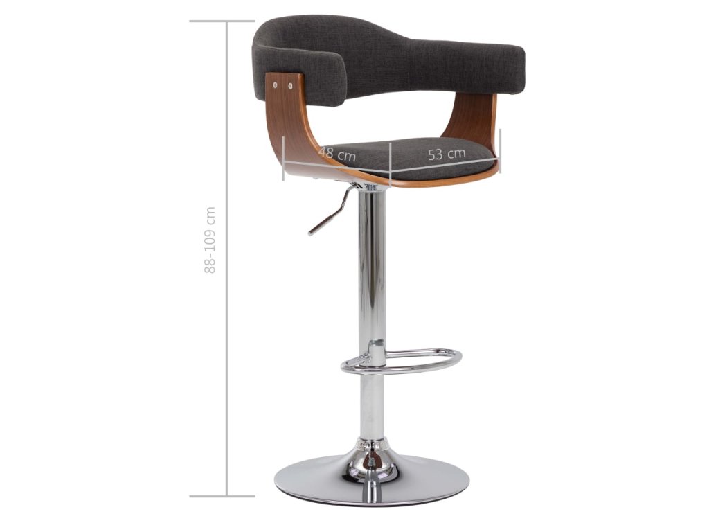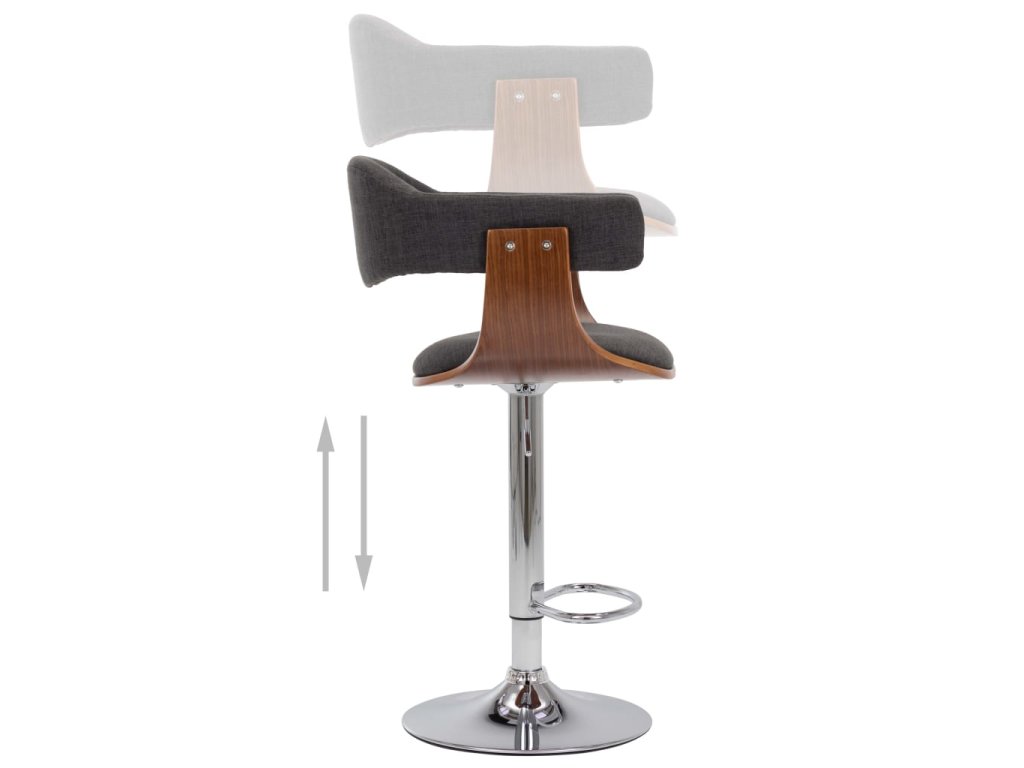 Stolička je potažená vysoce kvalitní látkou a dobře polstrovaná, aby se vám na ní pohodlně sedělo. Rám z ohýbaného dřeva podtrhuje její jedinečnou krásu a styl. Železná konstrukce zaručuje vysokou odolnost, zatímco zapuštěná opěrka nohou vám zpříjemní posezení. Vzhledem k ergonomickému tvaru se na židli můžete pohodlně uvelebit na celé hodiny. Mechanismus s plynovým pístem umožňuje nastavovat její výšku. Barová stolička představuje dokonalý doplněk do každého funkčního baru či jídelny.