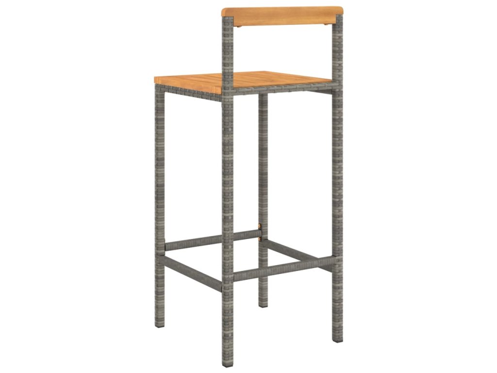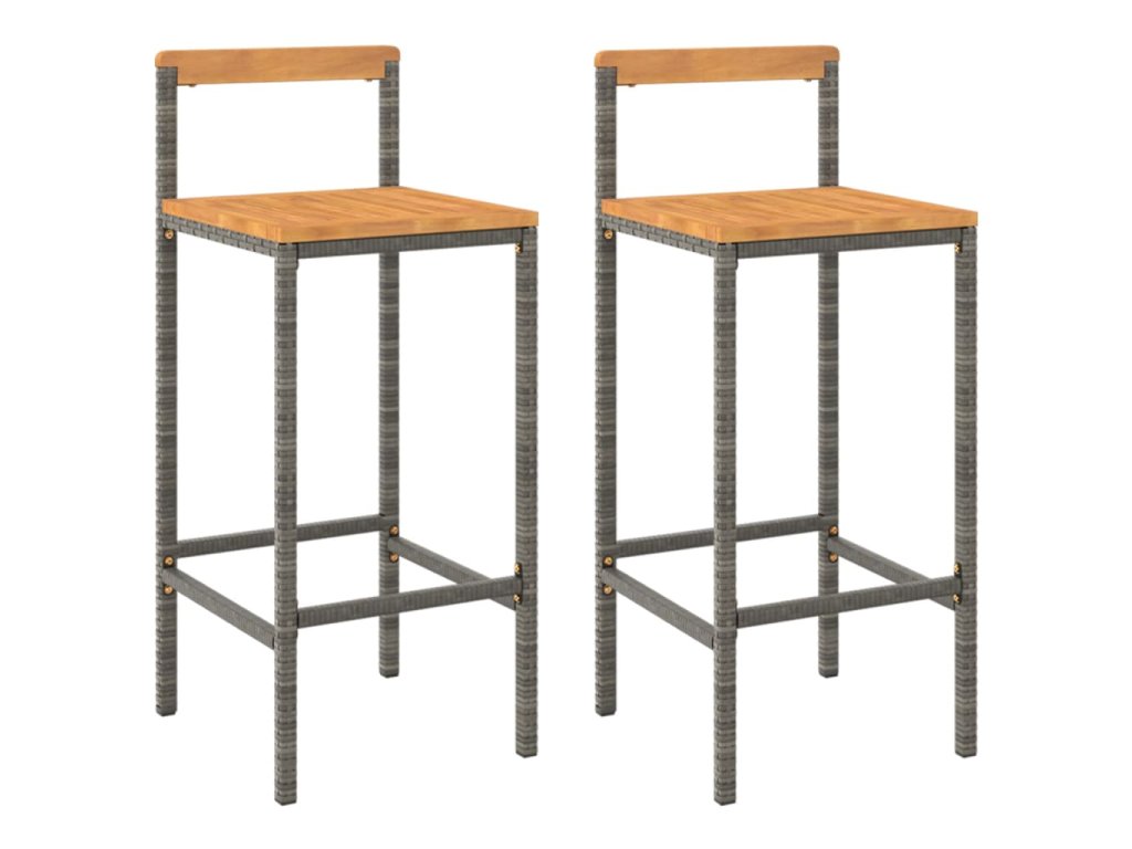 Barové stoličky 2 ks šedé polyratan a masivní akáciové dřevo