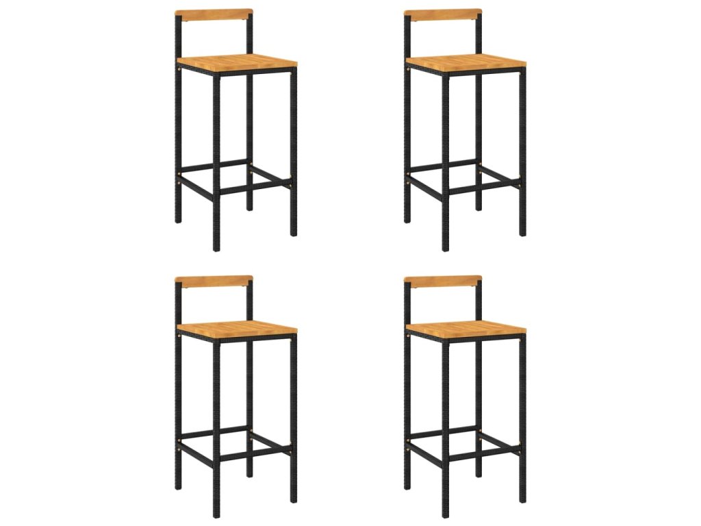 Barové stoličky 4 ks černé polyratan a masivní akáciové dřevo