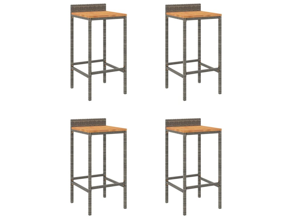Barové stoličky 4 ks šedé polyratan a masivní akáciové dřevo