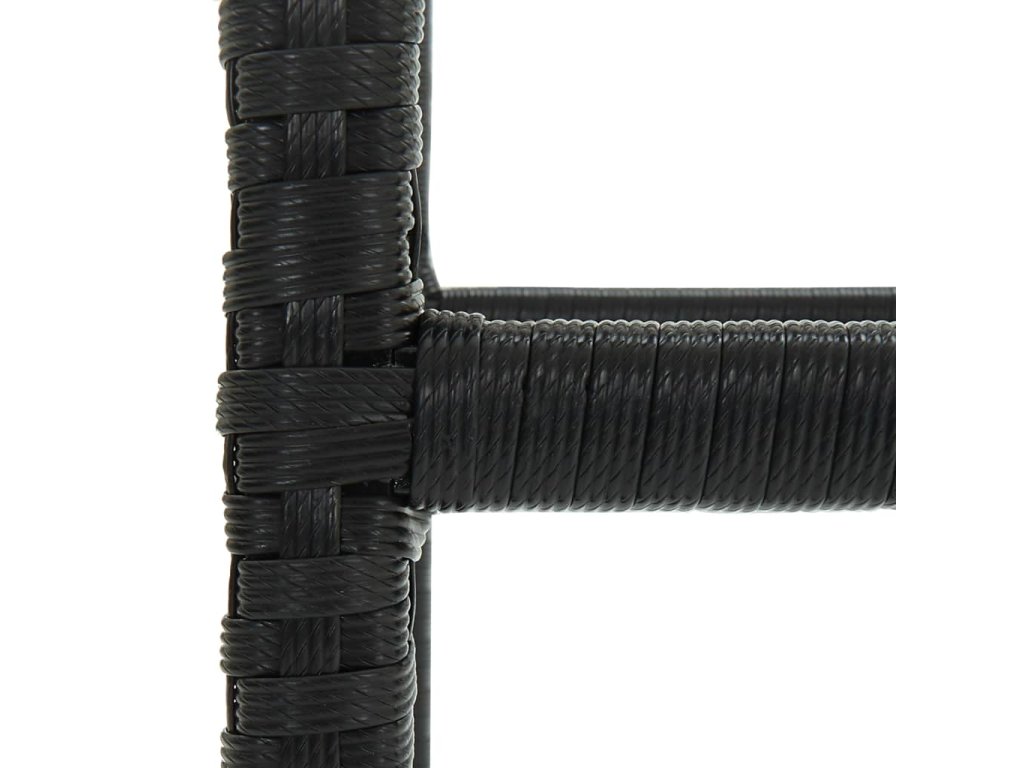 Barová židle má stabilní a odolnou konstrukci z ocelového rámu. Klimaticky odolný a lehký PE ratan má dlouhou životnost a snadno se přenáší. Sedák na podušku a vestavěná opěrka na nohy přispívají k pohodlí při sezení. Polyesterový potah na podušku se skrytým zipem lze sejmout a vyprat.