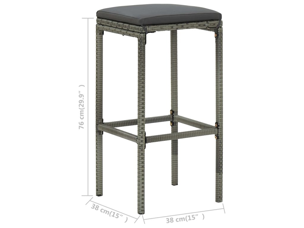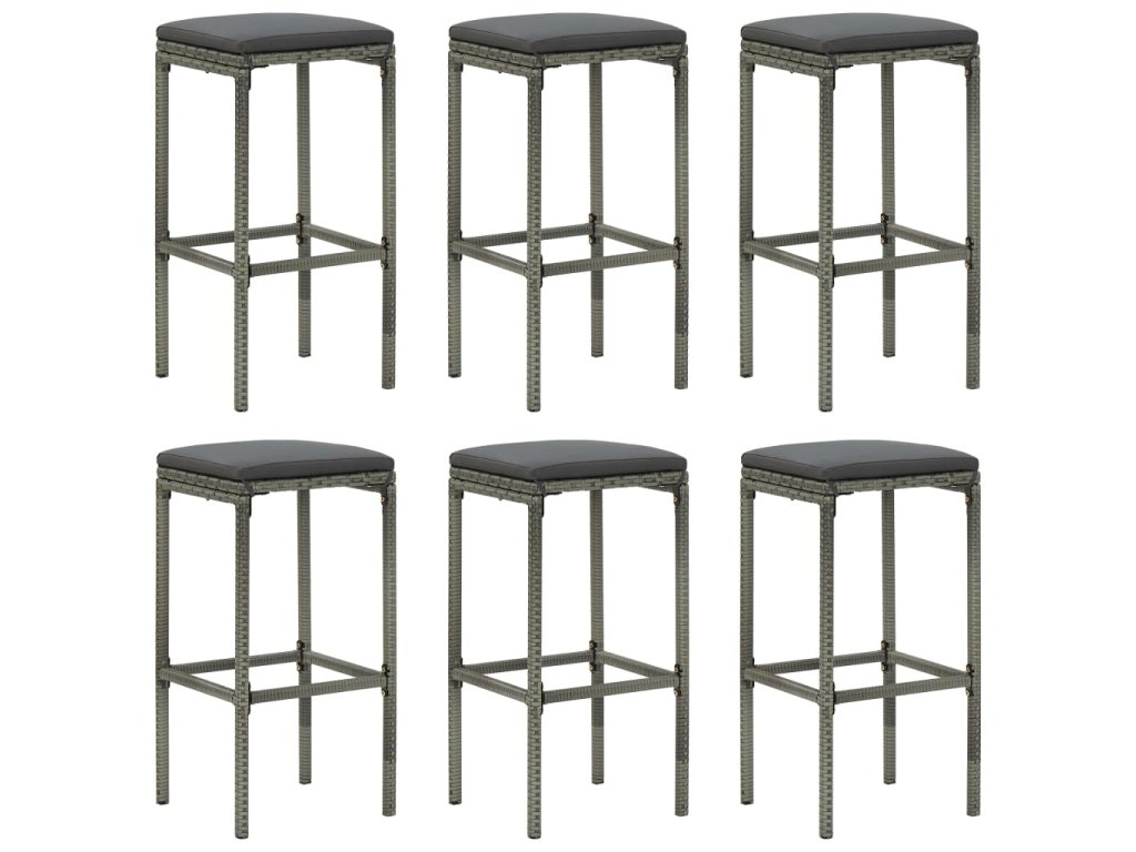Barové stoličky s poduškami 6 ks šedé polyratan