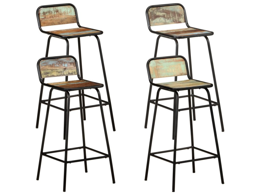 Tyto barové stoličky jsou vyrobené z masivního recyklovaného dřeva, které pochází z trámů, podlah a podpěrných nosníků ze starých budov určených k demolici. Může tedy sestávat z celé řady různých druhů dřeva, jako jsou borovice, teak, buk, dub, cedr, mangovník, akácie apod. Recyklované dřevo tak nabývá vlastností všech těchto rozličných typů dřevin. Navíc je již zestárlé, ošlehané a vyschlé, takže se nesmršťuje ani neohýbá. Tyto židle jsou celé ručně vyráběné a překrásná kresba dřeva dává každému kusu nábytku jedinečný a od všech ostatních lehce odlišný charakter. Ocelový rám s práškovým nástřikem zajišťuje extra stabilitu. Tyto hospodské stoličky mají také vestavěné opěrky nohou pro větší pohodlí při sezení.