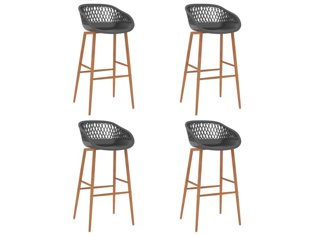 Barové židle mají ergonomicky tvarované sedadlo s integrovaným nízkým opěradlem a vyplétaným vzhledem. Jsou vyrobené z robustního PP materiálu a stojí na pevných kovových nohách s transférovým potiskem s dřevěným vzhledem, takže jsou robustní a odolné.