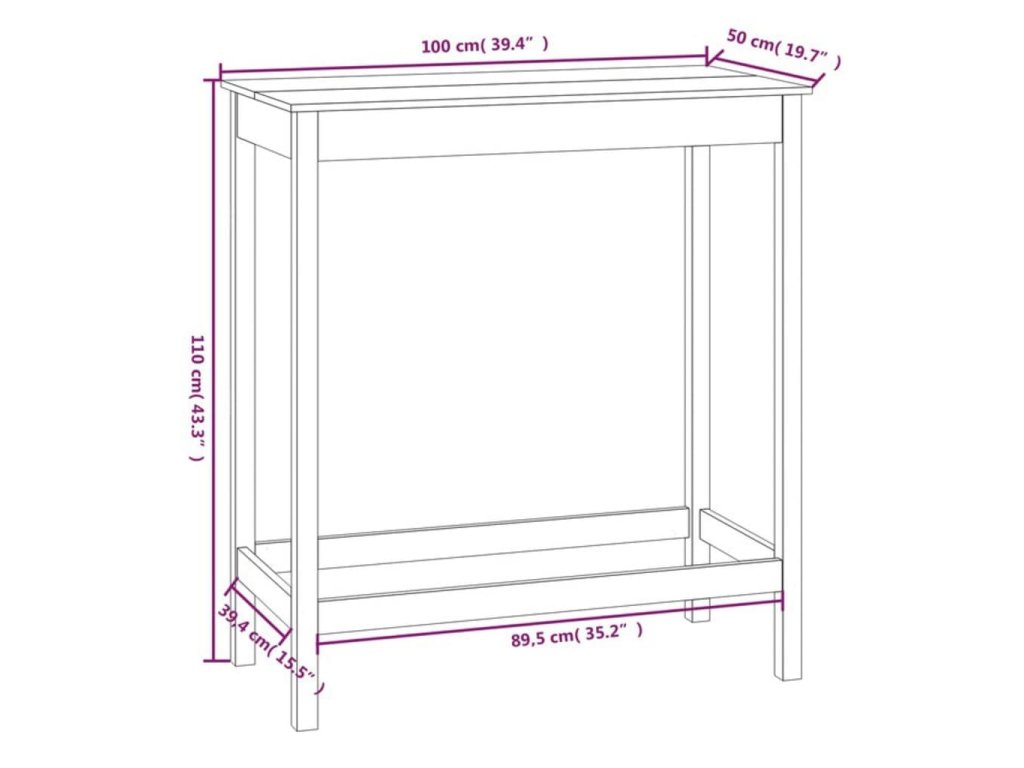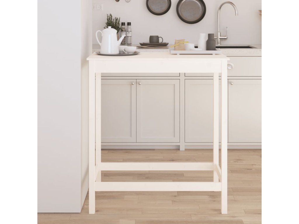 Barový stolek bílý 100 x 50 x 110 cm masivní borové dřevo