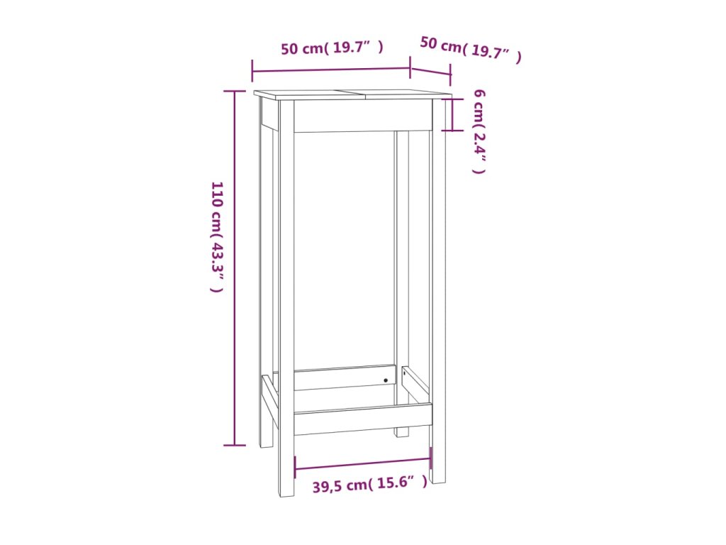 Barový stolek bílý 50 x 50 x 110 cm masivní borové dřevo