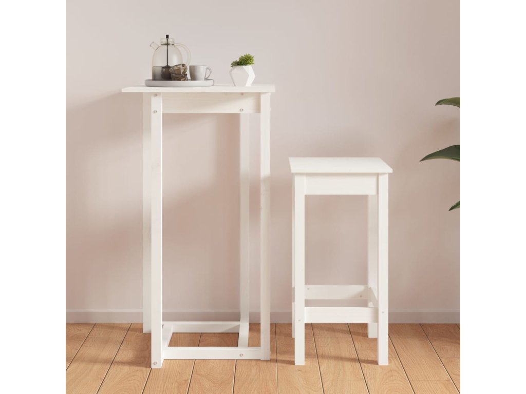 Barový stolek bílý 60 x 60 x 110 cm masivní borové dřevo