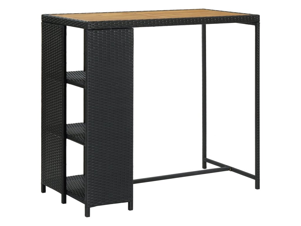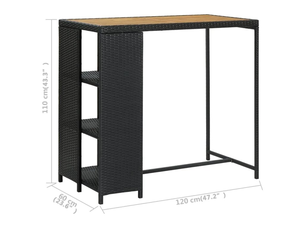 Barový stolek s úložným regálem černý 120x60x110 cm polyratan