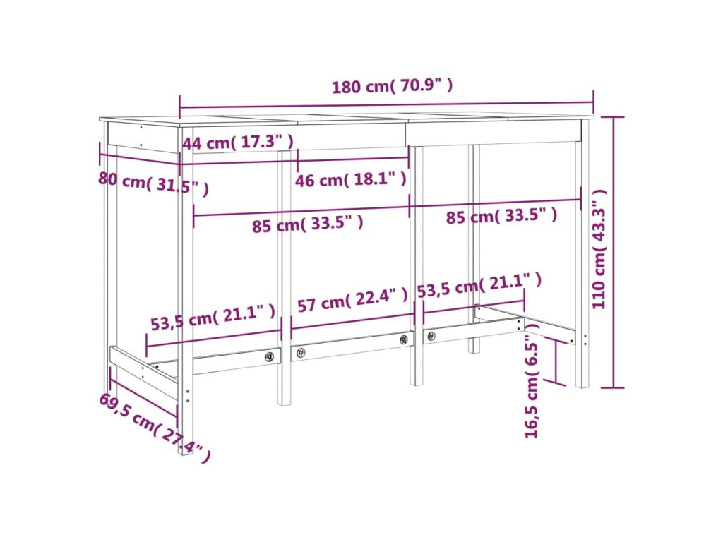 Barový stůl bílý 180 x 80 x 110 cm masivní borové dřevo
