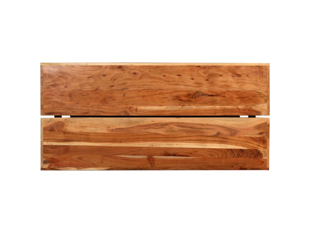 Barový stůl je vyrobený z masivního akáciového dřeva, které je odolné, stabilní a snadno se čistí. Stůl je celý ručně vyrobený a překrásná kresba dřeva dává každému kusu nábytku jeho jedinečný a od ostatních lehce odlišný charakter. Silné ocelové nohy přidávají stolu na stabilitě a odolnosti a navíc umocňují jeho působivý industriální styl.