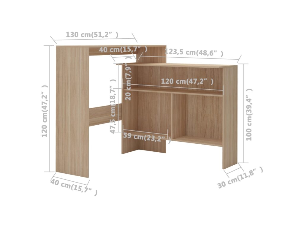 Barový stůl se 2 stolními deskami dub 130 x 40 x 120 cm