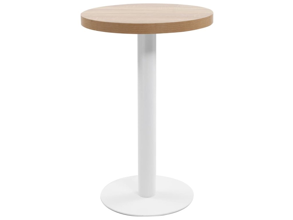 Horní deska stolu je vyrobená z MDF se vzorem dřevěné kresby a podpírá ji ocelová noha se základnou. Snadno ji očistíte vlhkým hadříkem. Stolek skvěle využijete jako samostatný kus nábytku ve svém bydlení, ale i v restauraci, kavárně nebo baru.