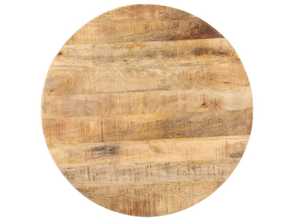 Stolní deska je ručně vyrobená z hrubého mangovníkového dřeva s přírodním povrchem. Jedná se o tropické tvrdé dřevo, které dokáže unést značnou váhu. Skvěle také odolává opotřebení a působení času, takže je stabilní a dlouho vydrží. Černá základna z práškově lakovaného železa zajišťuje výtečnou rovnováhu a pevnost. Tento jídelní stůl vám rovněž poslouží k odkládání nápojů či jiných věcí, které chcete mít vždy po ruce.