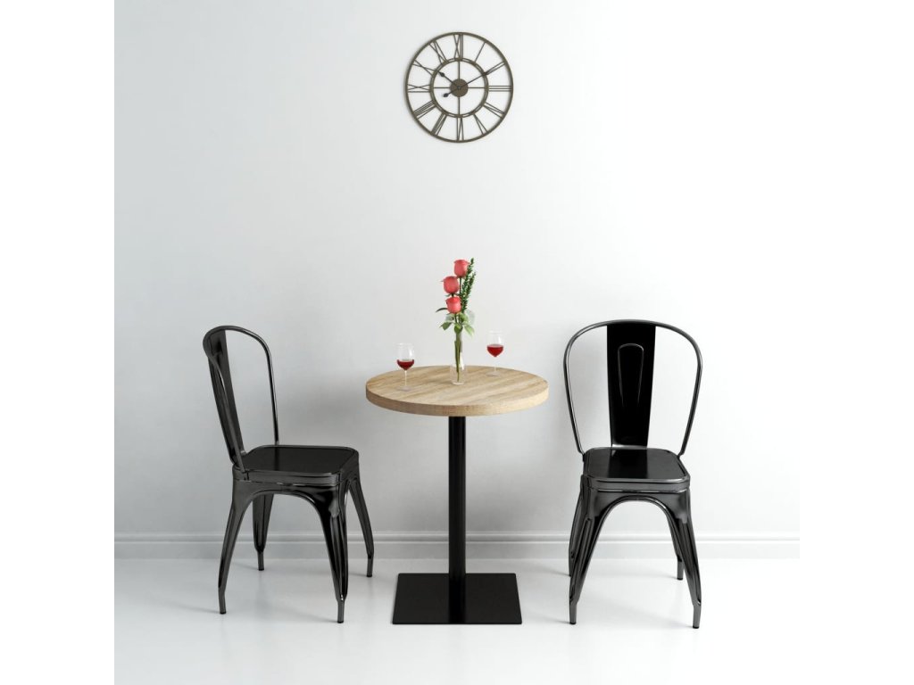 Horní deska stolu je vyrobena z MDF s povrchovou zrnitou úpravou a je podepřena ocelovou nohou a základnou. Snadno se čistí pouze vlhkým hadříkem. Použijte jej jako samotný kus ve svém interiéru, restauraci, kavárně nebo baru.