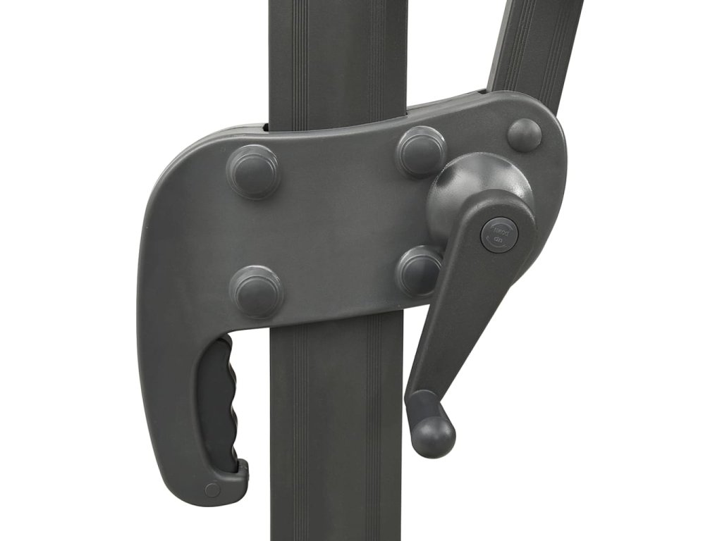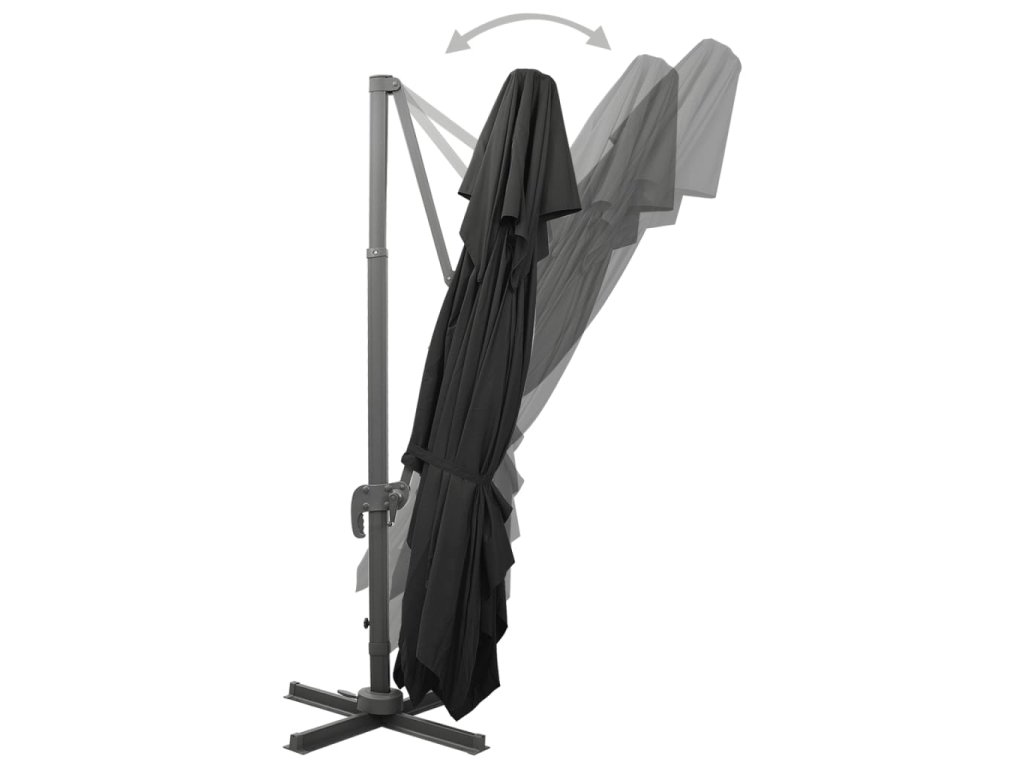 Ochranný kryt slunečníku je vyroben z polyesteru s UV ochranou a odolností proti blednutí, poskytuje vám optimální ochranu před sluncem a snadno se čistí. Má robustní křížovou základnu pro větší stabilitu. Exkluzivní design tohoto slunečníku umožňuje naklápění a otáčení o 360 stupňů pro ochranu před sluncem. Silná hliníková tyč spolu s 8 žebry činí slunečník velmi stabilním a odolným. Tento zahradní slunečník lze snadno otevírat a zavírat díky klikovému mechanismu. Dvojitá stříška navíc usnadňuje větrání.