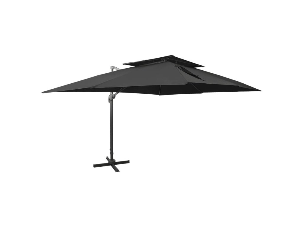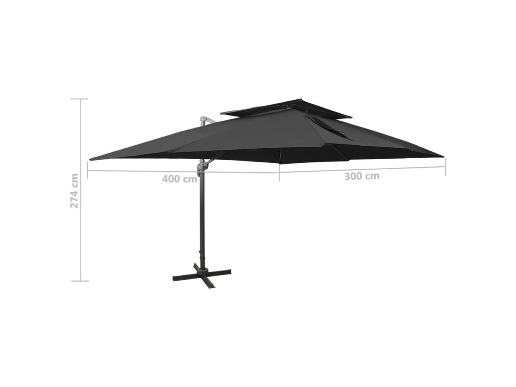 Konzolový zahradní slunečník s dvojitou střechou černý 400 x 300 cm