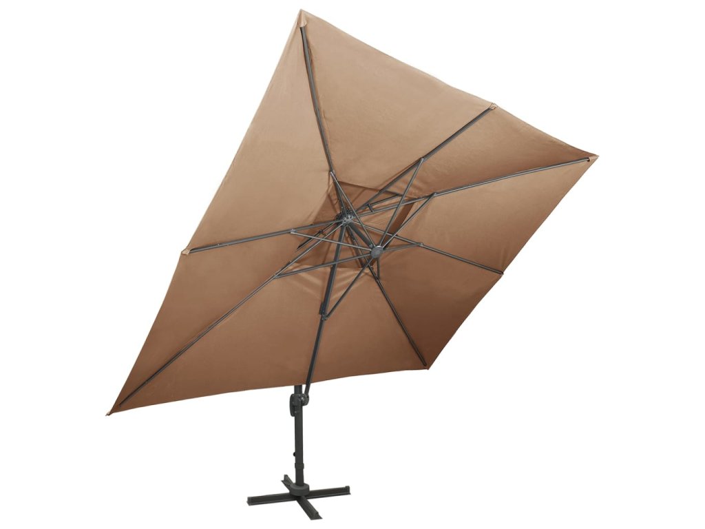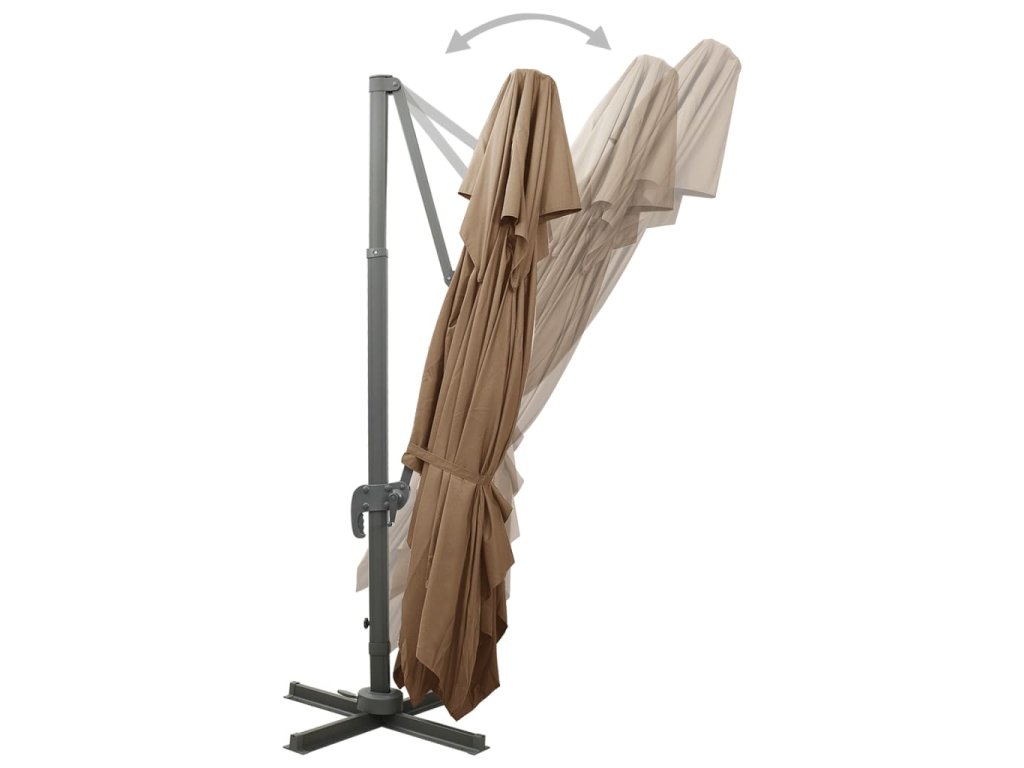 Boční zahradní slunečník s dvojitou stříškou taupe 400 x 300 cm