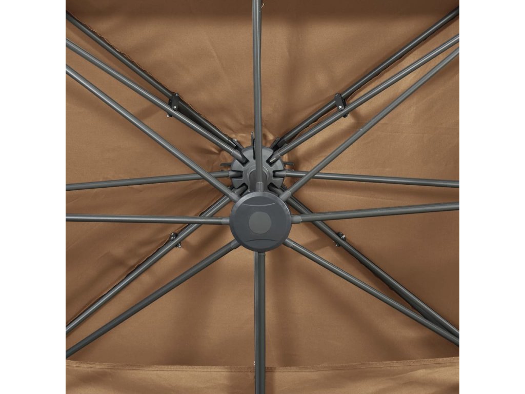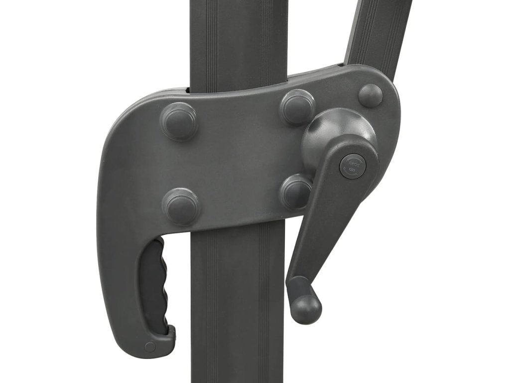 Stříška slunečníku je vyrobená z polyesterové tkaniny, která nebledne a nepropouští škodlivé UV záření, takže vám poskytne optimální ochranu před sluncem. Navíc se snadno čistí. Křížová základna zaručuje lepší stabilitu. Exkluzivní konstrukce vám umožní slunečník naklánět a otáčet o 360 stupňů, aby blokoval slunce v každé situaci. Silná hliníková tyč s 8 žebry zajišťuje, že se slunečník nehýbe a vydrží vám dlouho sloužit. Zahradní slunečník je vybavený klikovým mechanismem, dá se tedy bez námahy otevírat i zavírat. Design s dvojitou stříškou napomáhá lepší ventilaci.