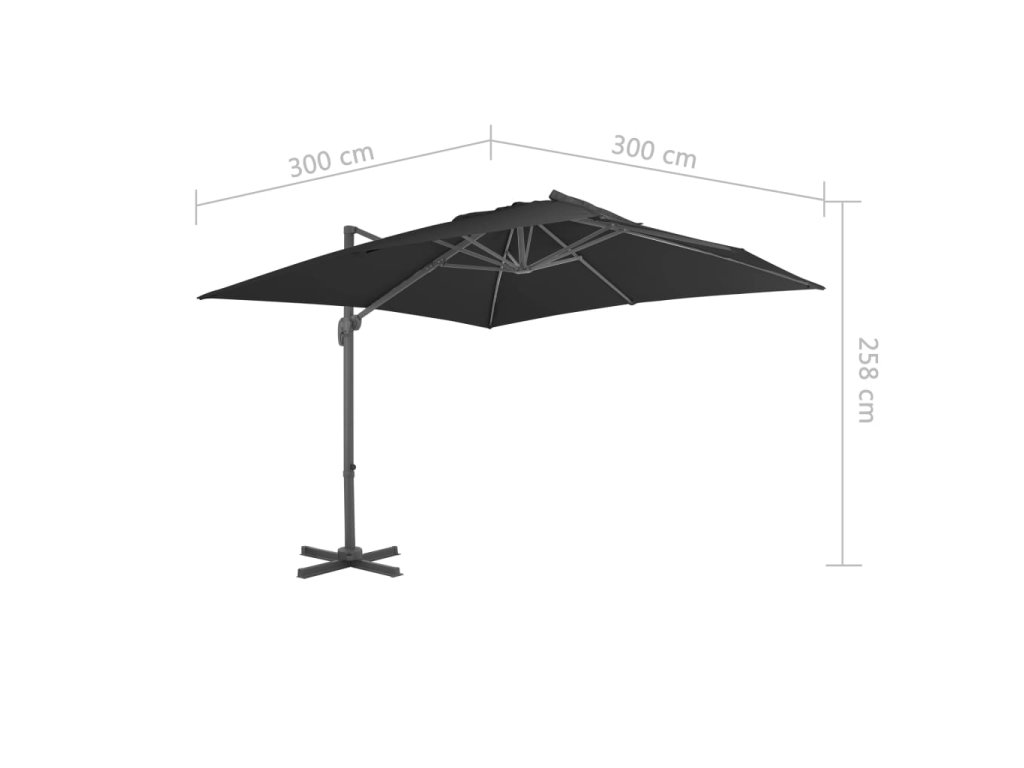 Boční zahradní slunečník s hliníkovou tyčí 3 x 3 m černý